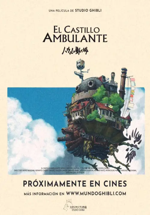 Sophie, una joven sombrerera, ve su vida cambiar de forma inesperada cuando una bruja celosa le lanza un hechizo que la transforma en una anciana. Buscando una manera de romper el encantamiento, emprende un viaje que la lleva hasta un extraño castillo que camina por los campos y que pertenece al enigmático mago Howl. Mientras convive con sus peculiares habitantes, Sophie descubre secretos sobre la magia, el coraje y el verdadero significado del amor en medio de un mundo amenazado por la guerra.